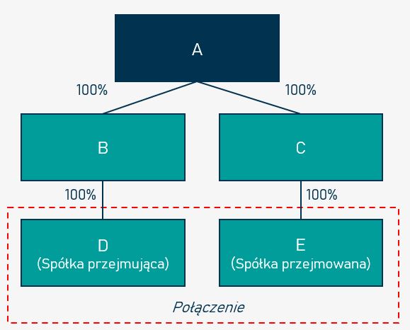 to połączenie można przeprowadzić w taki sposób, że spółka przejmująca nie przyzna udziałów/akcji wspólnikowi lub wspólnikom łączących się spółek (tj. połączenie bez emisji udziałów/akcji).